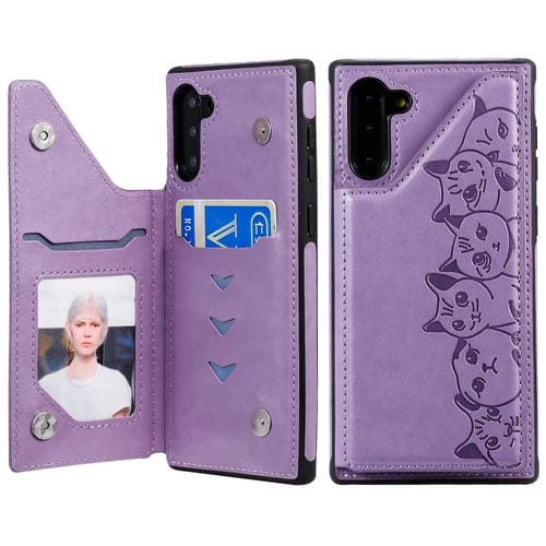 Estuche Protector Six Cats para Galaxy Note 10 con Patrón En Relieve Soporte Ranuras y Marco de Fotos (Púrpura)