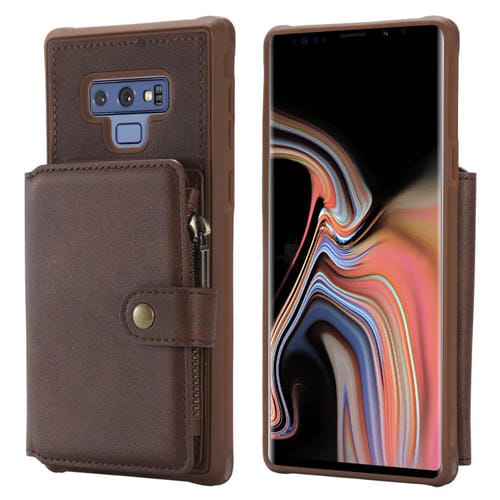 Estuche Protector Galaxy Note9 con Cremallera Ranuras Tarjetas Soporte Billetera (Café)