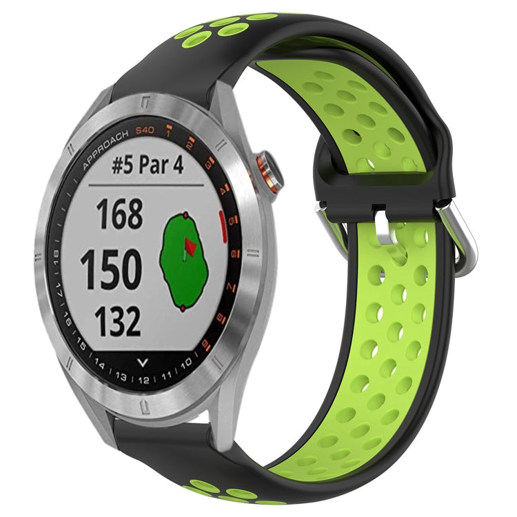 Correa de Reloj de Silicona Deportiva para Garmin Approach S40 20mm Transpirable Perforada (Negro + Lima)