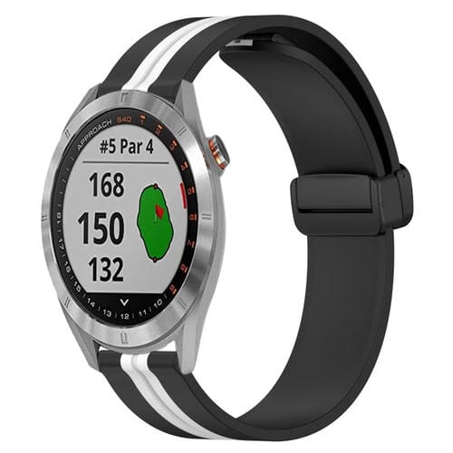 Correa de Silicona para Garmin Approach S40 con Cierre Magnético Plegable de 20mm (Negro + Blanco)