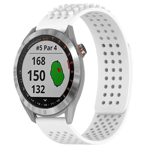 Correa de Reloj Silicona para Garmin Approach S40 con Puntos 3D Transpirables y Orificios de 20mm (Blanco)