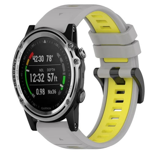 Correa de Silicona Deportiva para Garmin Descent Mk 1 26mm (Gris + Amarillo)