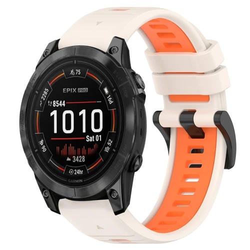 Correa de Silicona para Garmin Epix Pro 42mm 20mm Sports Dos Colores (Starlight + Orange)