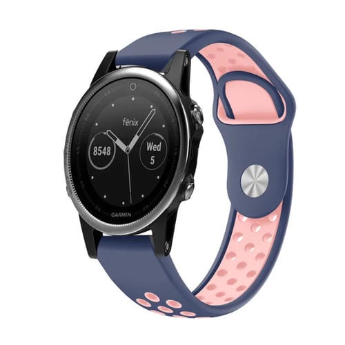 Pour Garmin Fenix ​​​​5 22 mm Sports Bracelet de montre en silicone respirant (bleu nuit + rose)