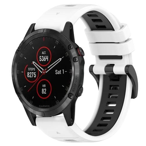 Pour Garmin Fenix ​​​​5 Plus 22 mm Sports Bracelet de montre en silicone bicolore (blanc + noir)