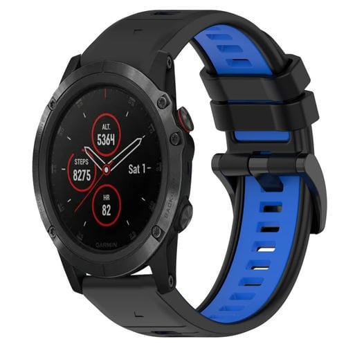 Correa de Silicona para Garmin Fenix 5X Plus 26mm Sports (Negro + Azul)