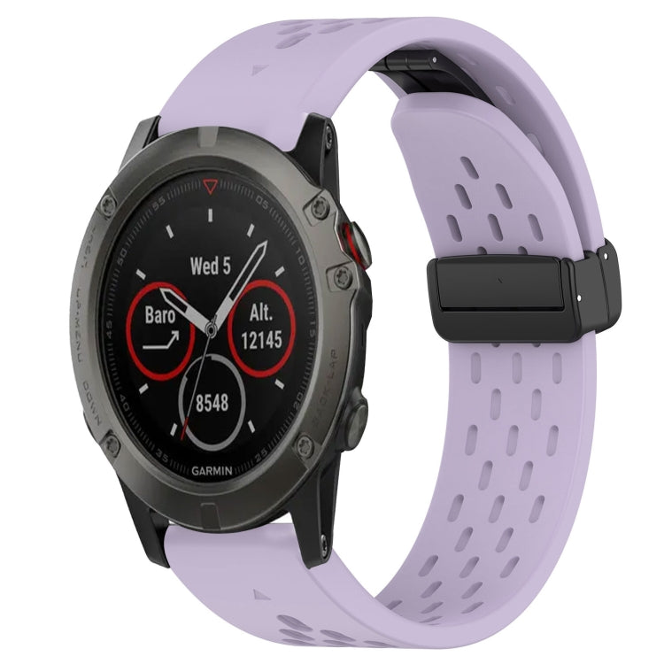 Correa de Reloj de Silicona para Garmin Fenix 5X Sapphire 26mm con Orificio para Hebilla Plegable (Púrpura)