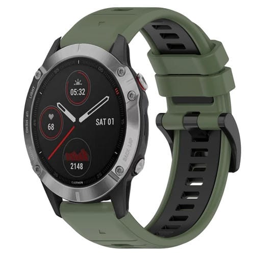Correa de Silicona 22mm para Garmin Fenix 6 GPS Sports (Verde Oliva + Negro)