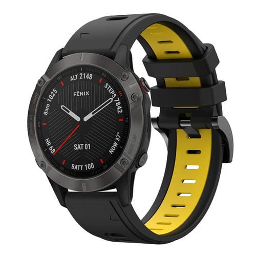 Banda de Reloj Silicona Garmin Fenix 6 Sapphire GPS 22mm Deportiva Dos Colores (Negro + Amarillo)