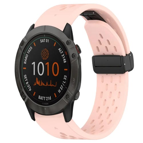 Correa de Reloj Silicona para Garmin Fenix 6X 26mm con Orificio y Hebilla Plegable (Rosa)