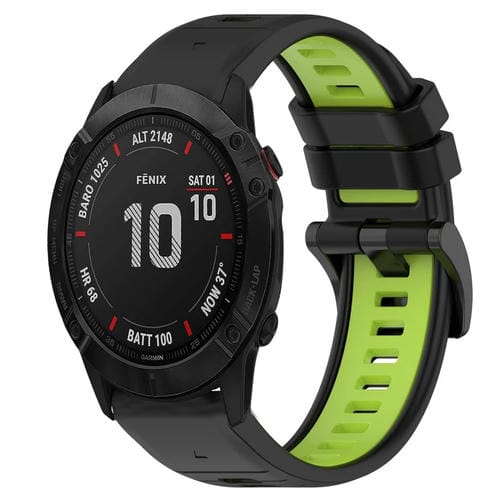 Correa de Silicona para Garmin Fenix 6X Sapphire 26mm Sports (Negro + Verde Lima)