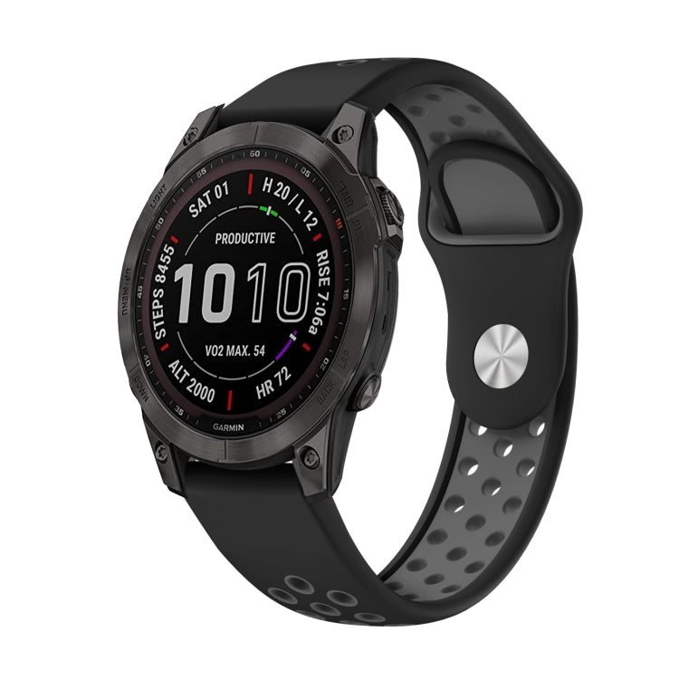 Correa de Reloj Garmin Fenix 7 Sapphire Solar 22mm Silicona Transpirable Deportiva (Negro + Gris)