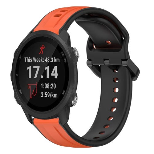 Banda de Reloj para Garmin Forerunner 245 Music Silicona Dos Colores Bucle Convexo 20mm (Naranja + Negro)