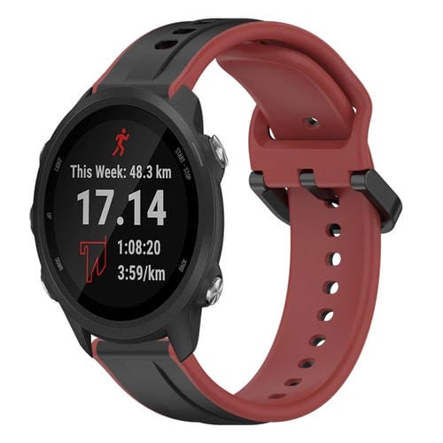 Banda de Reloj Garmin Forerunner 245 Music Silicona Dos Colores Bucle Convexo 20mm (Negro + Rojo)