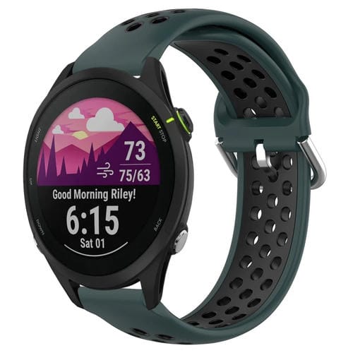 Banda de Reloj silicona deportiva para Garmin Forerunner 255 Music 22mm (Verde Oliva + Negro)