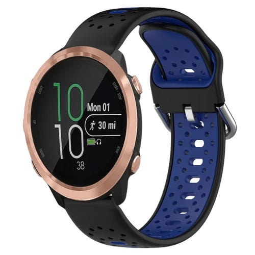Banda de Reloj Silicona para Garmin Forerunner 645 Music 20mm Transpirable (Negro + Azul)