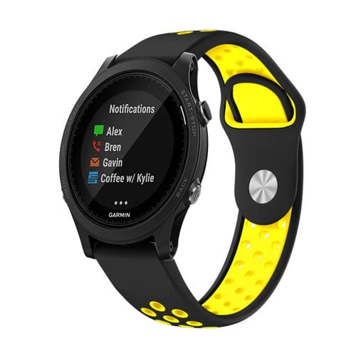 Pour Garmin Forerunner 935 22 mm Sports Bracelet de montre en silicone respirant (noir + jaune)