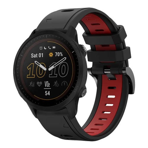 Banda de Reloj Garmin Forerunner 955 22mm Silicona Deportiva Dos Colores (Negro + Rojo)