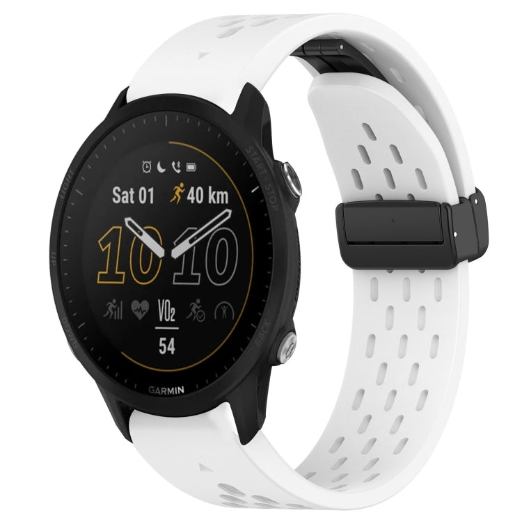 Correa de Reloj de Silicona para Garmin Forerunner 955 con Orificio y Hebilla Plegable de 22mm (Blanco)