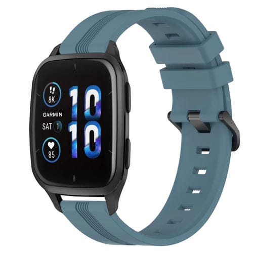 Banda de Reloj de Silicona para Garmin Forerunner Sq2 Music 20mm Cóncava a Rayas (Rock Cyan)
