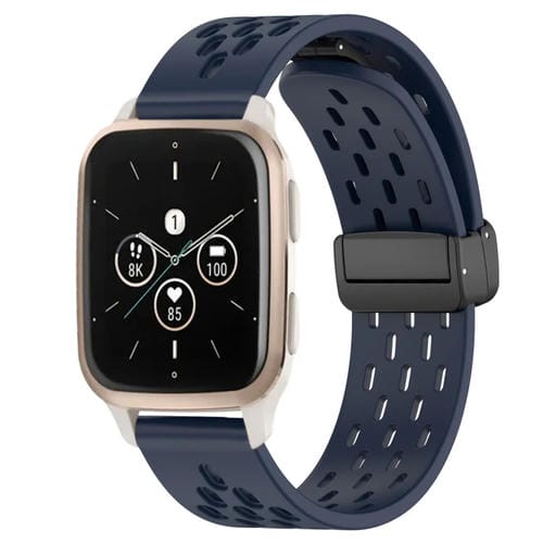 Correa de Silicona para Garmin Forerunner Sq2 Music con Cierre Magnético Plegable de 20mm (Azul Medianoche)