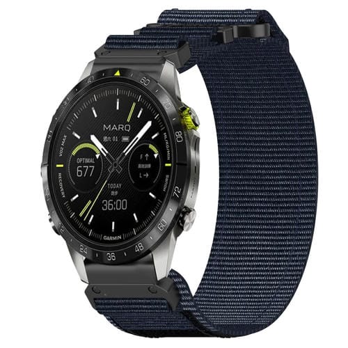 Correa para Garmin Marq Athlete Gen 2 de Nailon 22mm con Cierre de Gancho y Bucle (Azul)