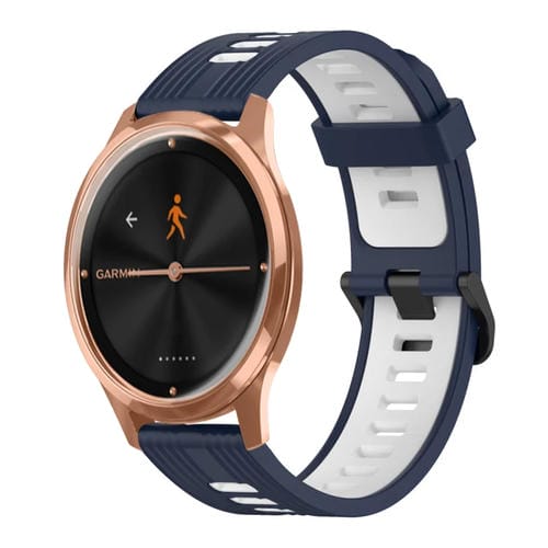 Banda de Reloj para Garmin Move Luxe 20mm Silicona dos colores (Azul Oscuro+Blanco)