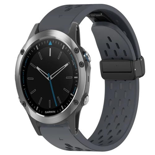 Correa de Reloj para Garmin Quatix 5 de Silicona con Orificio y Hebilla Plegable de 22mm (Gris Oscuro)