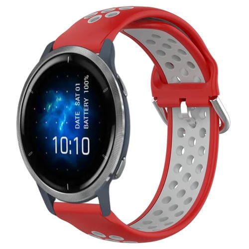 Correa de Reloj Silicona Deportiva para Garmin Venu 2 22mm Transpirable Perforada (Rojo + Gris)