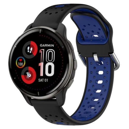 Banda de Reloj Garmin Venu 2 Plus 20mm Silicona Transpirable Dos Colores (Negro + Azul)