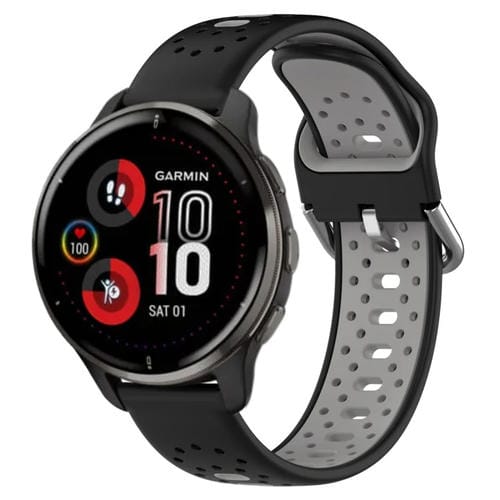 Banda de Reloj Silicona para Garmin Venu 2 Plus 20mm Transpirable Dos Colores (Negro + Gris)