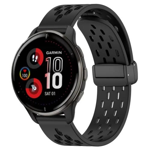 Correa de Silicona para Garmin Venu 2 Plus con Cierre Magnético Plegable de 20mm (Negro)