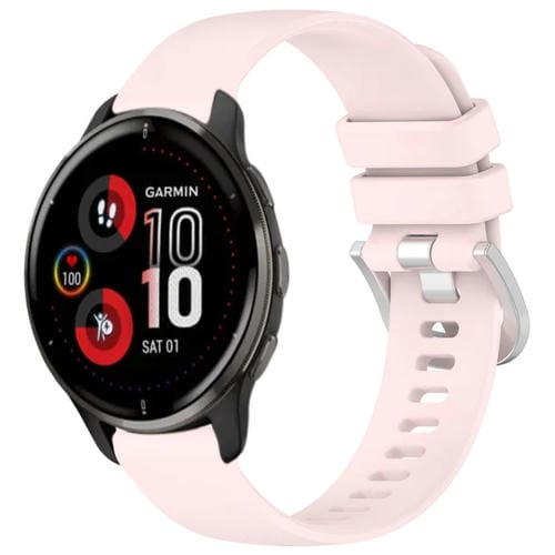 Para Garmin Venu 2 Plus Correa de Reloj de Silicona con Hebilla Plateada Líquida Brillante (Rosa)