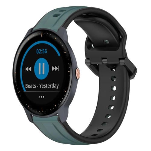 Banda de Reloj para Garmin Vivoactive3 Music de Silicona Dos Colores con Bucle Convexo 20mm (Verde Oliva + Negro)
