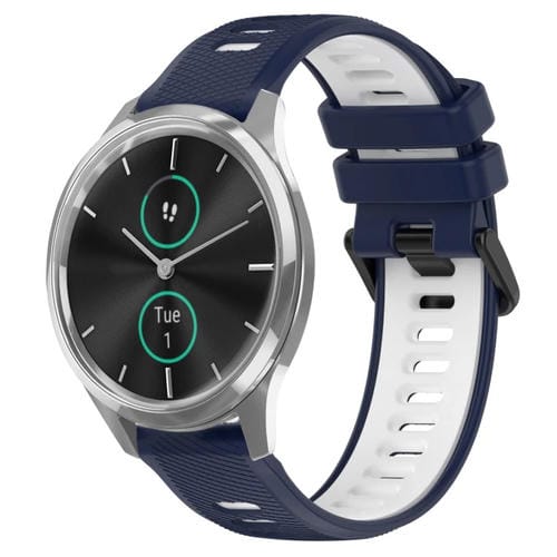 Correa deportiva silicona 20mm para Garmin Vivomove Luxe (Azul Medianoche + Blanco)