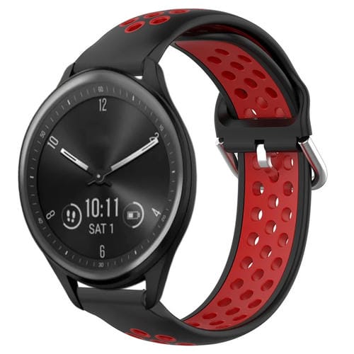Banda de Reloj Silicona Deportiva para Garmin Vivomove Sport 20mm Transpirable Perforada (Negro + Rojo)