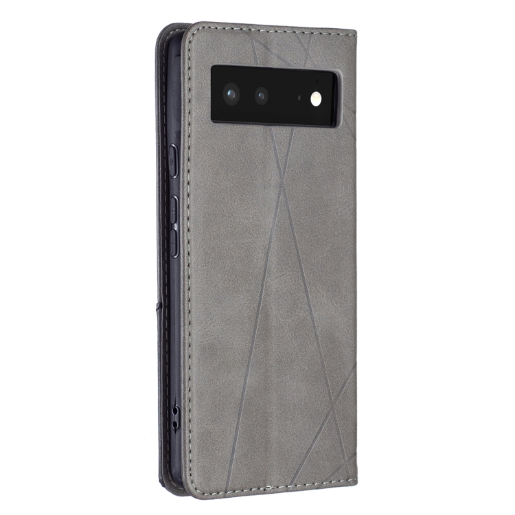 Para Google Pixel 6 Prismática Invisible Magnético Horizontal Flip Funda de cuero con soporte y ranuras para tarjetas y marco de fotos (gris)