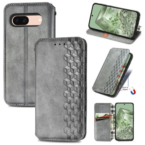 Funda de Cuero Magnético Prensado para Google Pixel 8A Cubic Grid (Gris)