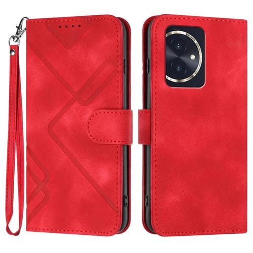 Funda de Cuero para Honor 100 con Sensación de Piel y Patrón de Líneas (Rojo)