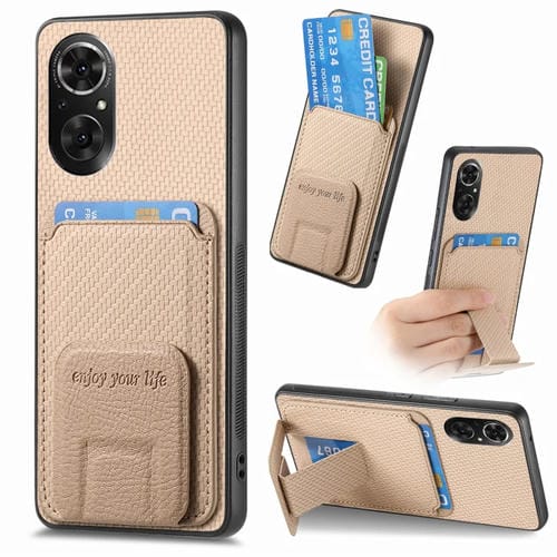 Funda para Honor 50 Se con Soporte Plegable y Bolsa para Tarjetas de Fibra de Carbono (Caqui)