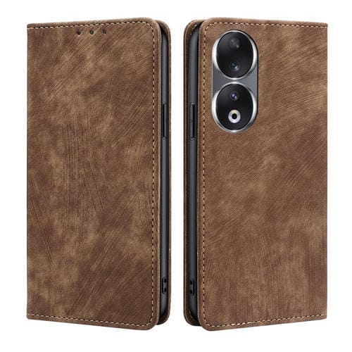 Funda de Cuero Magnética para Honor 90 5G con Rfid y Cepillo Antirrobo (Marrón)