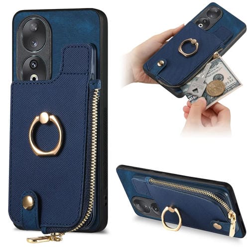 Pour Honor 90 Étui de téléphone à anneau en cuir à fermeture éclair verticale avec portefeuille arrière (bleu)