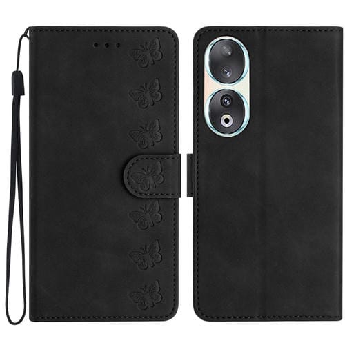 Funda para Teléfono Honor 90 de Cuero con Relieve Seven Butterflies (Negro)