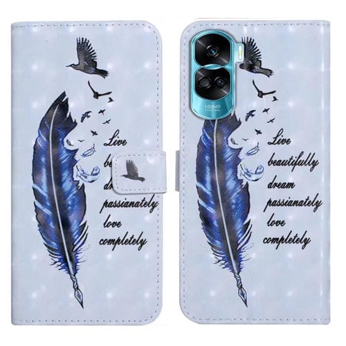 Funda para Honor 90 Lite de Cuero con Dibujo 3D en Relieve al Óleo (Pluma Azul)