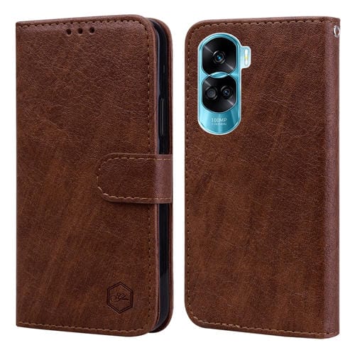 Funda para Honor 90 Lite PU + TPU Textura Cuero Aceitoso Sensación Piel (Marrón)