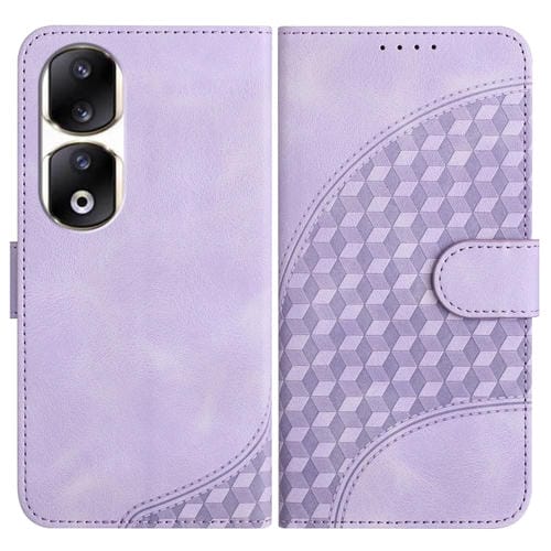 Funda de Cuero para Honor 90 Pro Yx0060 con Relieve y Cabeza de Elefante con Cordón (Púrpura Claro)