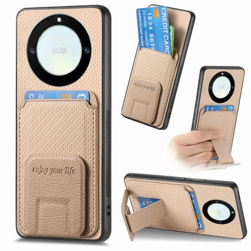 Funda para Honor X40 con Soporte Plegable y Bolsa para Tarjetas de Fibra de Carbono (Caqui)