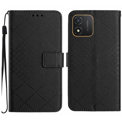 Funda de Cuero para Honor X5 4G con Textura de Rejilla Rómbica (Negro)