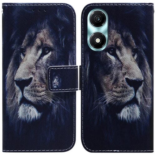 Funda de Cuero con Tapa para Honor X5 Plus y Play 40C con Dibujo León Coloreado