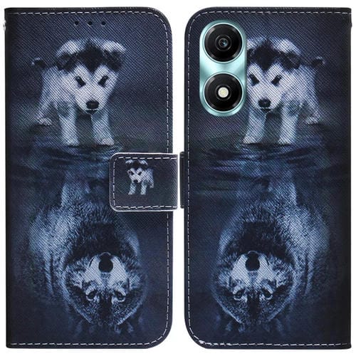 Funda de Cuero con Tapa para Honor X5 Plus y Play 40C con Dibujo Coloreado (Lobo y Perro)